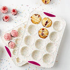 Colorful strips of confetti cover the White 12-Count Silicone Muffin Pan by Trudeau to give your kitchen an attractive bakeware piece that celebrates the joys of baking. Designed with an integrated steel structure, the muffin pan provides you with easy, comfortable handling. Durable, heat-resistant silicone enhances the muffin pan’s reliability, while the lack of BPA improves its safety. The pan resists a wide range of temperatures up to 428°F. This allows you to safely bake muffins or cupcakes in the oven, reheat them in the microwave, or store them in the freezer. The dishwasher gives you a quick, easy option for cleaning. If you’re going to bake, then do so your way: with style. And now, that way is with the brightly festive Trudeau’s White Confetti 12-Count Silicone Muffin Pan.