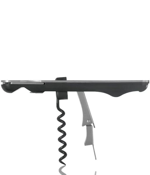 Functional and clever with a successful design. Good solutions for opening wine bottles delight sommeliers and discerning wine connoisseurs. Whether cutting the protective foil, lifting the cork, or removing the crown cap, good functionality paired with a sophisticated design makes opening a bottle an enjoyable experience from the very beginning. The PushPull corkscrew allows for effortless cork removal. The PushPull mechanism keeps the bottle securely on the table. The corkscrew is pressed down, and the cork is simultaneously pulled vertically and safely from the bottle without jamming. The two-stage lever support reduces the lever travel and the effort required for ergonomic handling. The coated spiral rotates easily into the cork while protecting it. The integrated foil cutter is form-fitting and harmoniously integrated into the corkscrew body and can be easily folded out. The design of the slim and space-saving PushPull corkscrew is aesthetically pleasing, and with its clever functional solution, it meets the standards of good design.