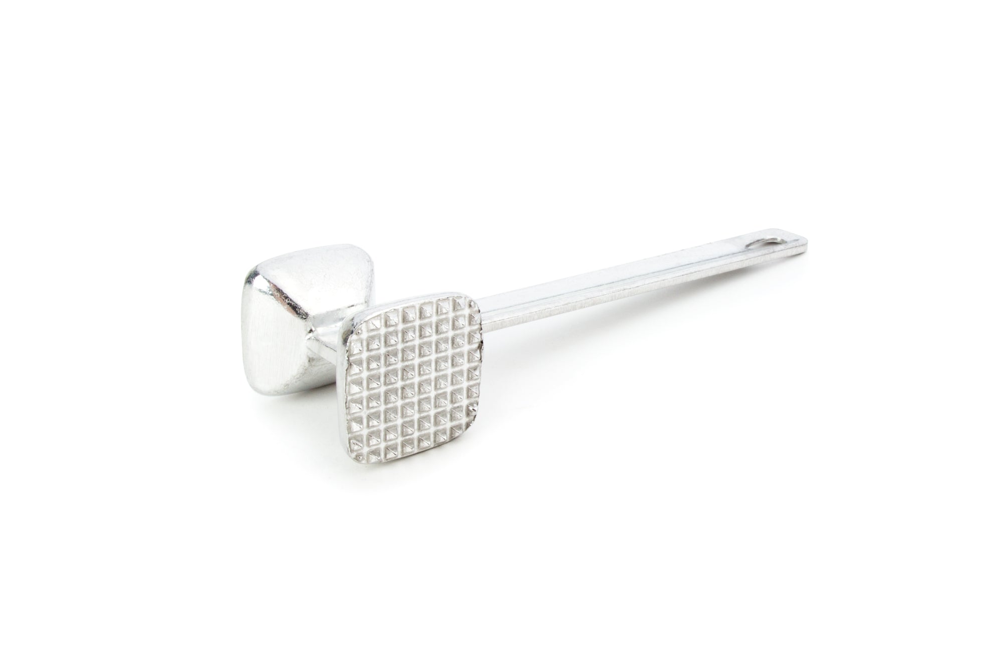 It's hammer time. Tenderize your meats to perfection with this versatile kitchen tool. Constructed of durable aluminum, this meat tenderizer is lightweight, so it's easy to use. It features a smooth surface and raised surface for pounding and tenderizing all types and cuts of meat. This gadget also features a convenient hanging hole for space-saving storage. Once added to your kitchen collection, you'll discover the extensive uses of this item! In addition to tenderizing and flattening chicken, veal, and steak, it can prepare cracked crab, crush nuts and ice cubes, and much more.