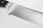 With its distinct double-serrated edge, the WÜSTHOF Classic 9" Double-Serrated Bread Knife is a classic among knives, and one of the more important knives to have in your kitchen. Beyond crusty loaves of bread and soft dinner rolls, this 9" Double-Serrated Bread Knife is also perfect for slicing into hard-skinned fruits and vegetables, and even for carving larger roasts. The bread knife's double-serrated edge makes a clear difference: the blade has serrations within the serrations, meaning it remains sharp for longer and requires minimal pressure for clean, even cuts.