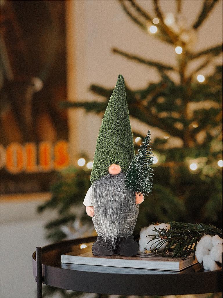 Gnomes have moved past gardens and moved on to helping us celebrate the holidays – just like this charming Medium-size Gnome with Knit Hat & Tree. Crafted out of terracotta and polyester, this knit-hat wearing gnome complete with long grey beard and ruddy nose holds a snow-flecked brush tree to bring some fun and festive charm to counters, mantles, decorative displays and more.
