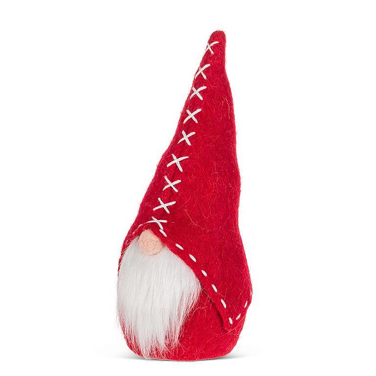 Bring some fun to your festive decor with this delightful Pointy Hat Gnome in Red and White. Crafted out of styro and polyester felt, this charming plush gnome decorative accessory features a flowing white beard and pointy red hat held together with contrasting white stitching for a playful complement to all your holiday decor.