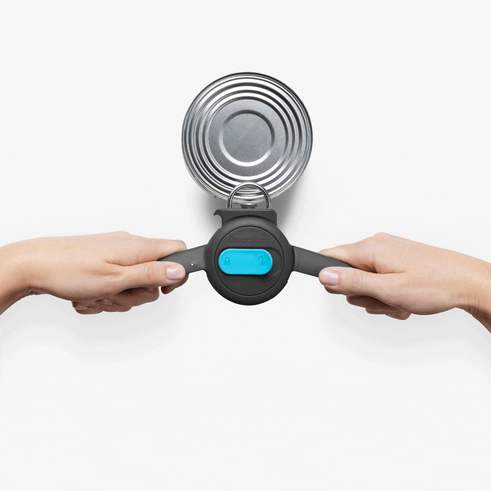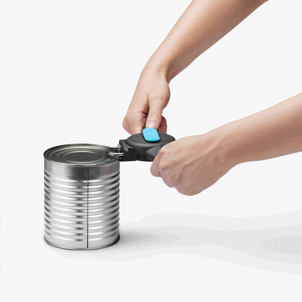 Unique mechanism is driven by pushing two handles together to effortlessly open cans with maximum speed and stability.