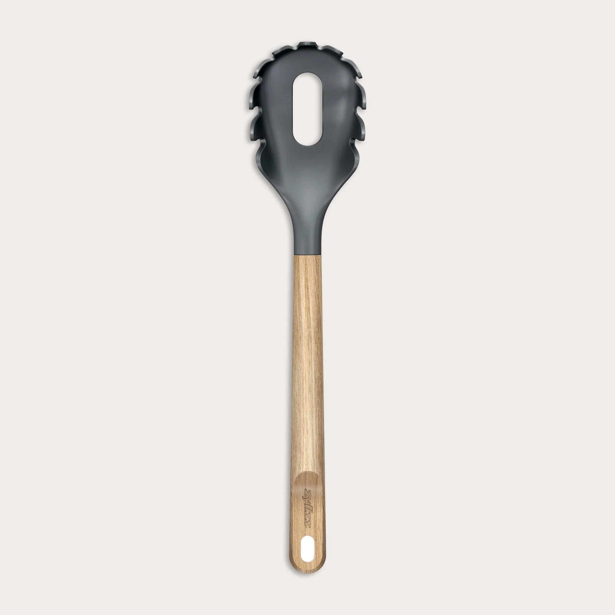 The Zyliss Spaghetti Server Oak Wood makes pasta serving simple and stylish. Its durable PBT head, heat resistant up to 200°C (392°F), features an integrated portion hole for measuring a serving of dry spaghetti. Paired with a natural oak handle, it offers timeless design and practical function in one tool.