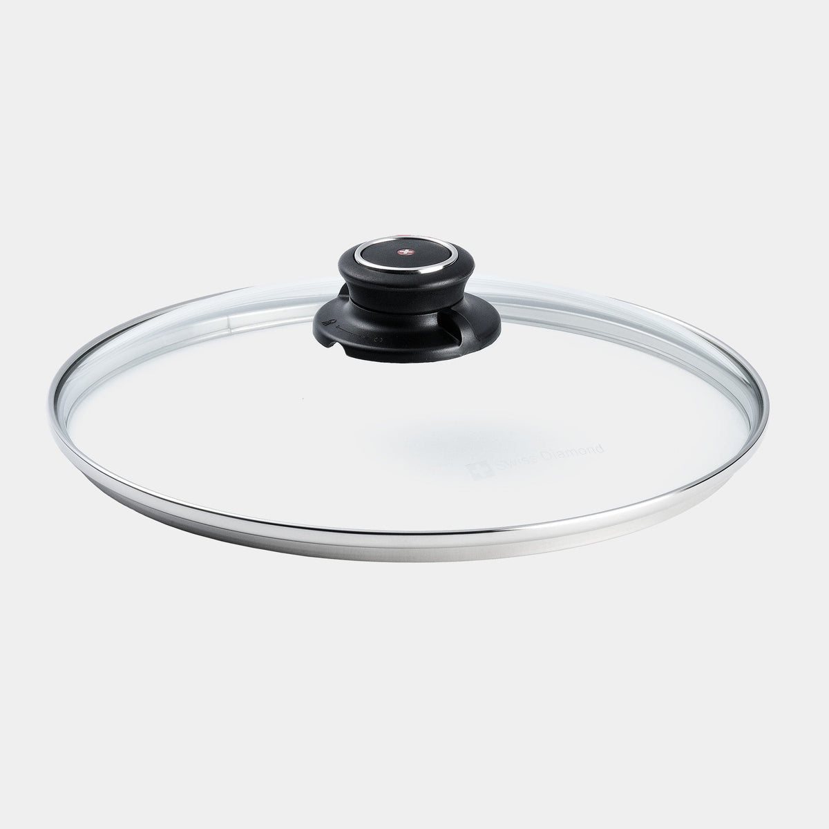 Our glass lid, designed for all Swiss Diamond pans, ensures a quality fit with its stainless steel lip. The heat-tempered glass allows easy monitoring with an adjustable vent for moisture control and to prevent boil-overs. Oven safe up to 500°F.