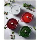 The cocotte originated in France where this casserole dish was designed to cook chicken dishes: in fact, the word "cocotte" itself is the French word for "little hen". Since then, however, the cocotte cast iron Dutch oven dish has been used to make a wide variety of other dishes by chefs and home cooks including soups, stews pot roasts and ragouts as well as for perfecting sauces. Beginners can use them as they try their hand at tasty oven-baked dishes and professional French chefs can't do without them for gratins or delicate soufflés. This particular cocotte is grey, adding a hint of elegance when presenting food at the table, round and has a diameter of 24 cm. As well as being aesthetically pleasing, cast-iron is an excellent heat retainer and is good at distributing heat equally, characteristics which are enforced by Staub's special matte black enamel. The durable bottom of the enamelled cast-iron Dutch oven can serve as a pan for searing food before slow cooking or adding to the oven making this an incredibly versatile model. This enamel also helps preserve a food's unique flavour. Since a cocotte retains heat well, meat and vegetables can be cooked gently whilst preserving both flavour and nutritional content. It is therefore perfect for cooking healthy meals. Its specially designed lid also releases condensation at regular intervals, keeping meat wonderfully succulent. Staub is known worldwide for making the best Dutch ovens which can be used for a wide variety of uses. With the Staub cocotte, you can treat yourself and your guests to beautifully tender meat and delicious-tasting vegetables at any time.
