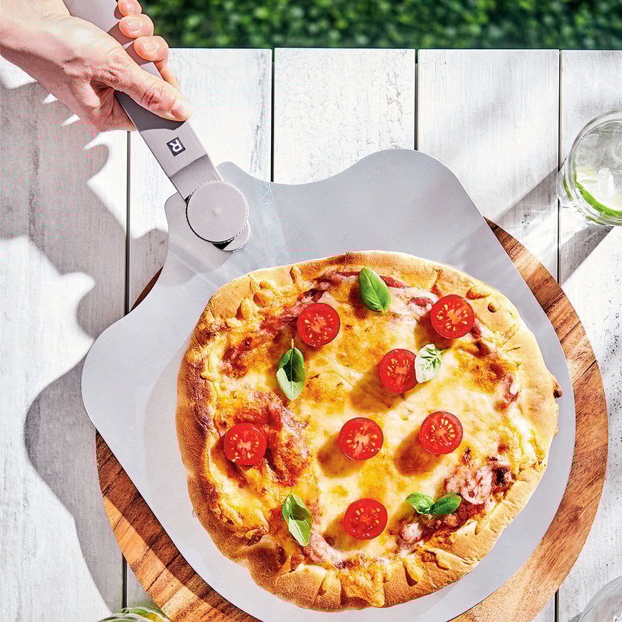 Transfer pizzas to and from the oven or grill like a pro with this convenient Pizza Peel. The thin blade slides easily under the pizza so you can prep, rotate, and plate your pizza without losing toppings. It features an innovative comfort grip handle that is easy to use and designed to protect your fingers from burns.
