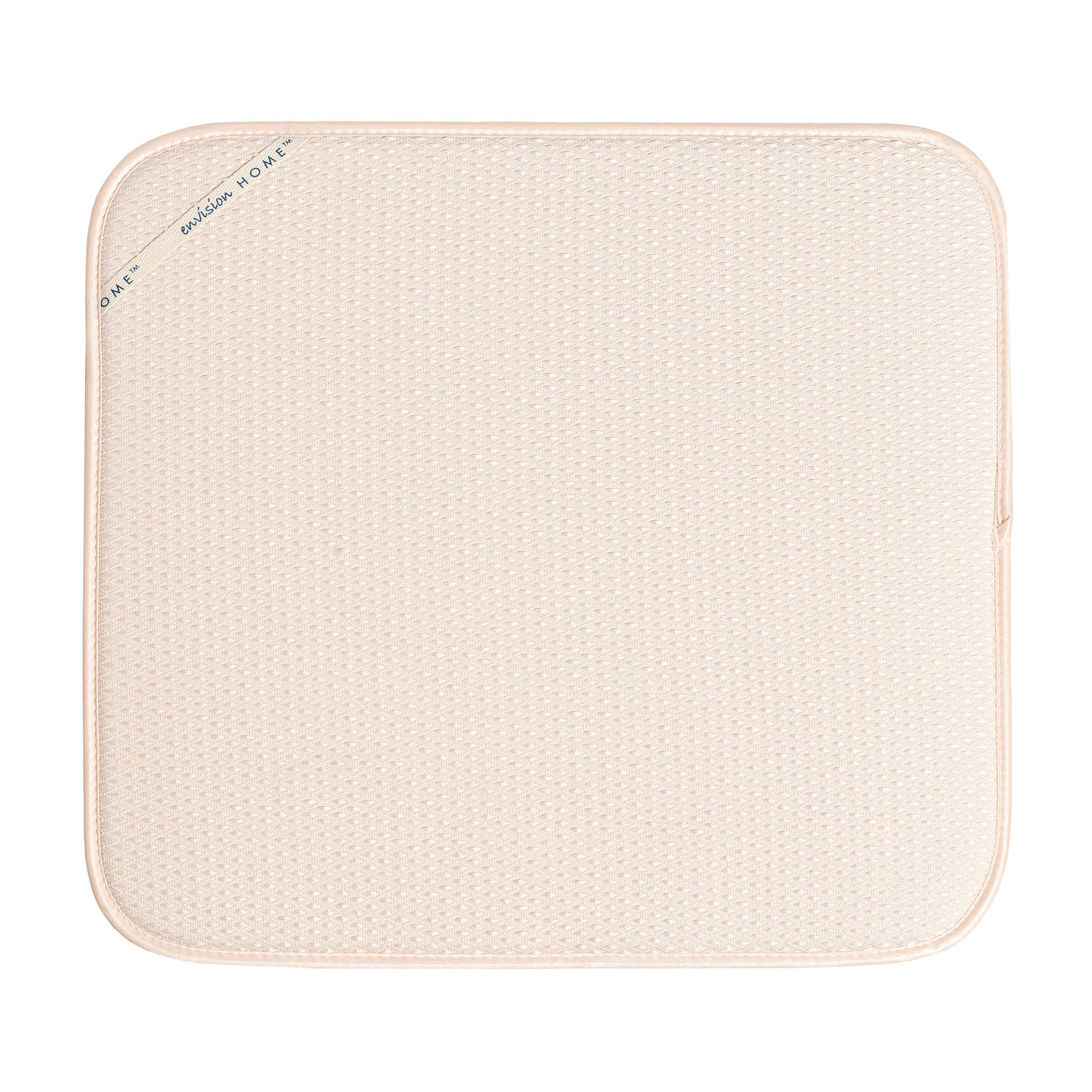The Envision Home Dish Dryng Mat is the new solution to the age old tradition of placing dish towels on the counter when hand-washing pots, pans, dishes and glassware. The unique, laminated design combines a new, thicker layer of foam between two layers of high-quality, super-absorbent microfiber.