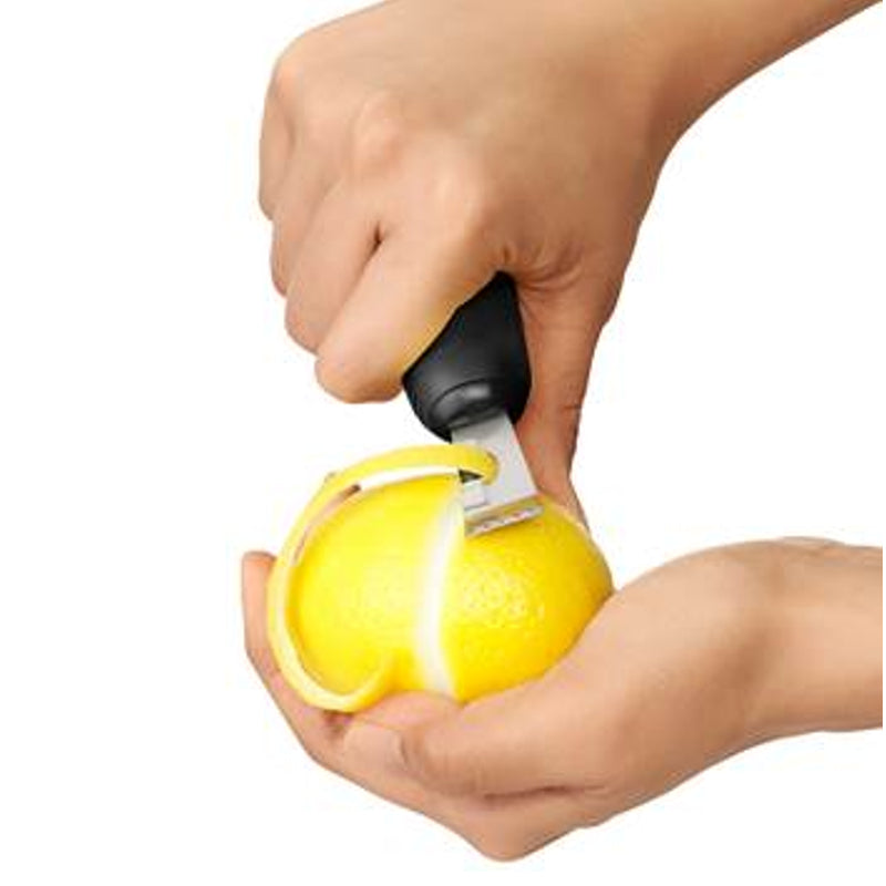 - Double duty stainless steel head allows you to zest and slice to create garnishes.
