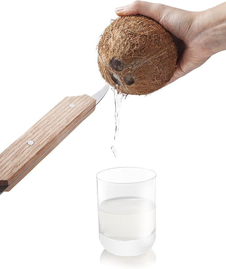 - To use, puncture the soft "eye" with the piercing end of the tool and drain the coconut water