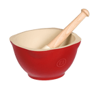 From pesto to guacamole, Chimichurri to hummus, the Emile Henry Mortar & Pestle helps you prepare spice blends, spreads, sauces, and dips quickly and easily, the old fashioned way. Available in numerous elegant colors, our mortar adds an original touch to your kitchen and helps you prepare sauces and dips quickly and easily. The inside glaze has been specially created so the ingredients do not slip about, it does not stain or retain any odors. Its 4 rounded edges make it easy to handle. The pestle is made from beech wood, with a ceramic head. All Emile Henry products are made in France and offer a ten years guarantee.
