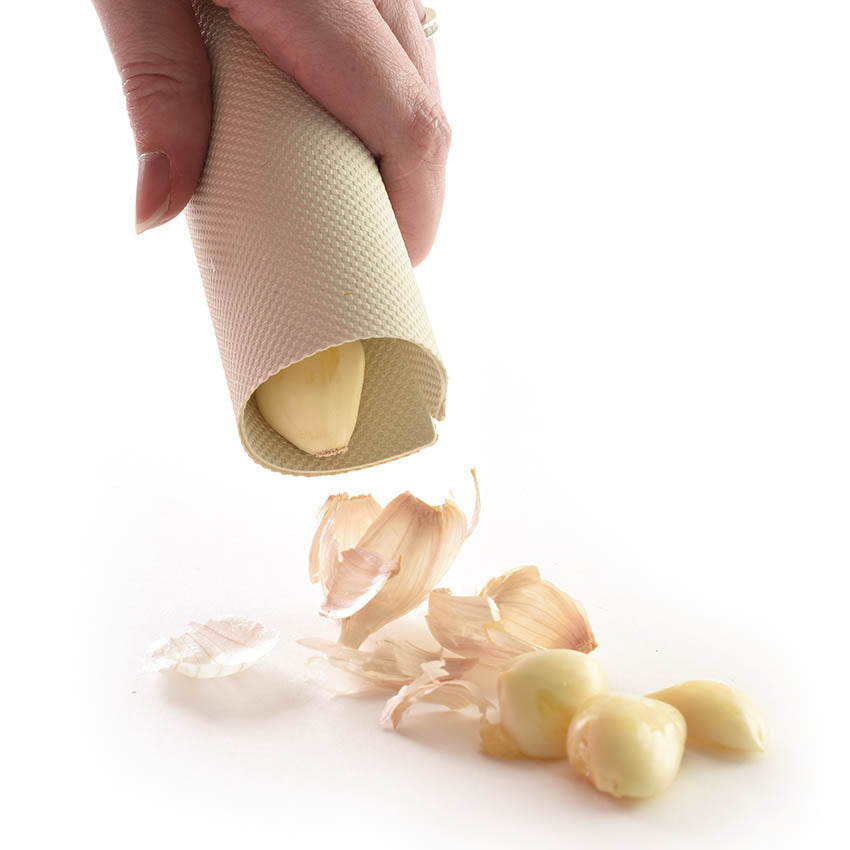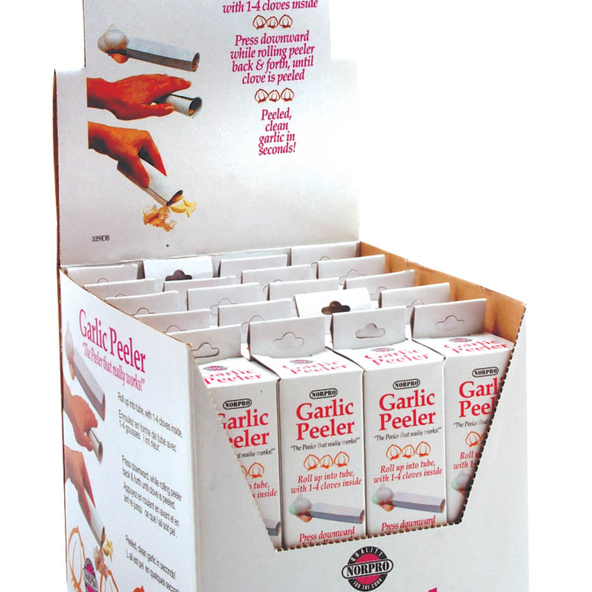 SIMPLY INSERT WHOLE, UNPEELED CLOVES, PRESS, ROLL AND PEELED CLOVES ROLL OUT. EACH MEASURES 5"X5 X 13CM X 13CM. FDA APPROVED RUBBER. DISPLAY OF 20 EACH INDIVIDUALLY BOXED.