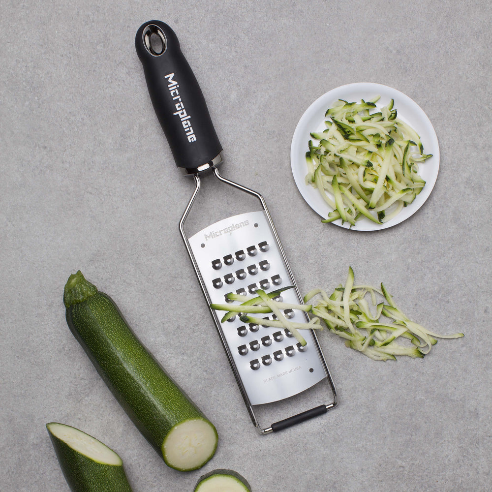 Discover the unmatched versatility and efficiency of the Microplane Gourmet Series Extra Coarse Grater. Designed for passionate cooks, this essential kitchen tool effortlessly grates a wide variety of ingredients to enhance your culinary creations. From apples, cabbage, carrots, chocolate, coconut, to both hard and soft cheeses, onions, and zucchini, achieve consistent, perfect results that are ideal for coleslaws, hashbrowns, or adding big, flavorful shreds of cheese to your favorite dishes.