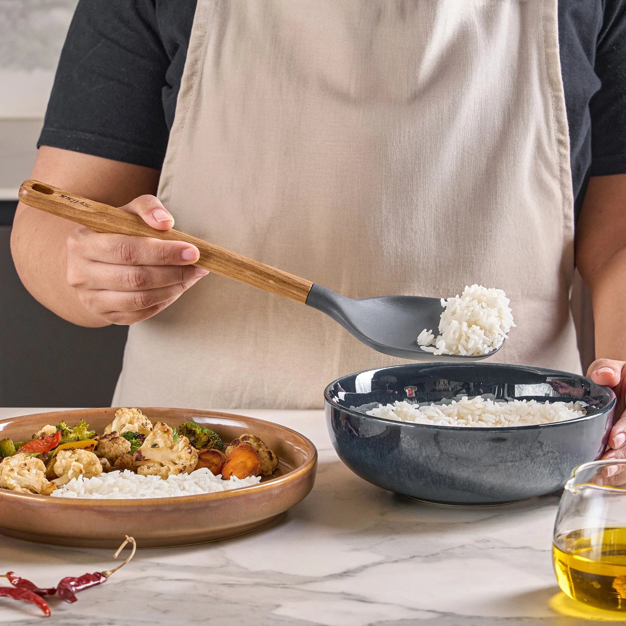 The Zyliss Spoon Oak Wood is designed for stirring, scooping, and serving with ease. Crafted with a durable PBT head, heat resistant up to 200°C (392°F), and a beautifully finished oak handle, it combines function and style. A timeless addition to any kitchen.