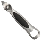 - The dual function bottle opener opens bottles and punches holes in cans.