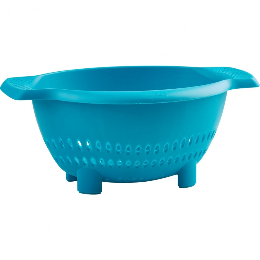 This large Trudeau colander is made of sturdy polypropylene and is built with easy-grip handles for easy manipulation. This anti-skid colander has raised feet for use in the sink. Perfect size colander for pastas, vegetables, berries and much more. The Trudeau large colander is dishwasher safe.