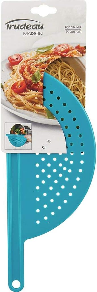 The Trudeau pot drainer is the perfect tool to help you drain liquids directly from pots and pans. It will fit on most pots and pans up to 9.5'' in diameter. Made of polypropylene, it is dishwasher safe.