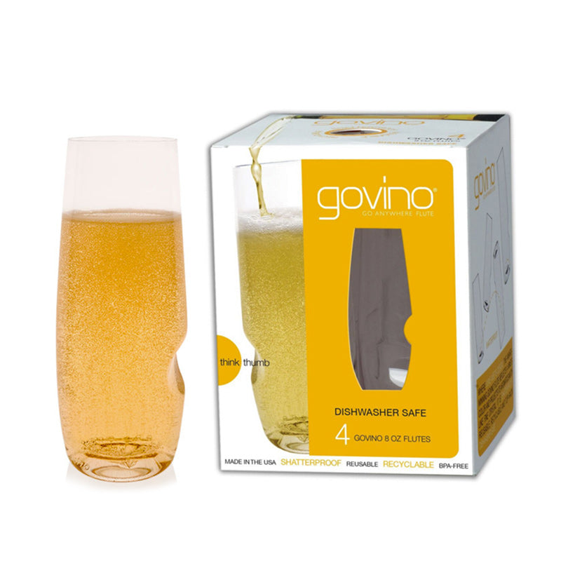 The eco-friendly plastic glasses can be reused and recycled. Made from ultra-thin 100% BPA-free polymer, the govino reflects the colour and aromatics of wine, and enhances the carbonation of beer and sparkling wine. These champagne glasses are perfect for any indoor or outdoor setting.
