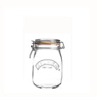 - With the Kilner brand embossed in the front, this jar is airtight with an orange rubber seal.