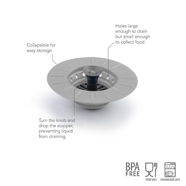 Prevent clogs by catching food debris before they go down the kitchen sink with the Collapsible Stopper & Strainer!