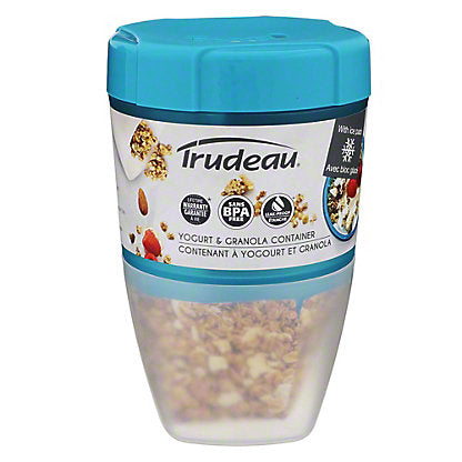 175ml (6oz) capacity bottom container for granola and/or dry fruits350ml (12oz) capacity leak-proof container allows to mix in granola and/or fruitsTwist lid with silicone seal to prevent leakage; Removable ice pack inside the lidMeasurements on containers for portion control; Can be used without granola container