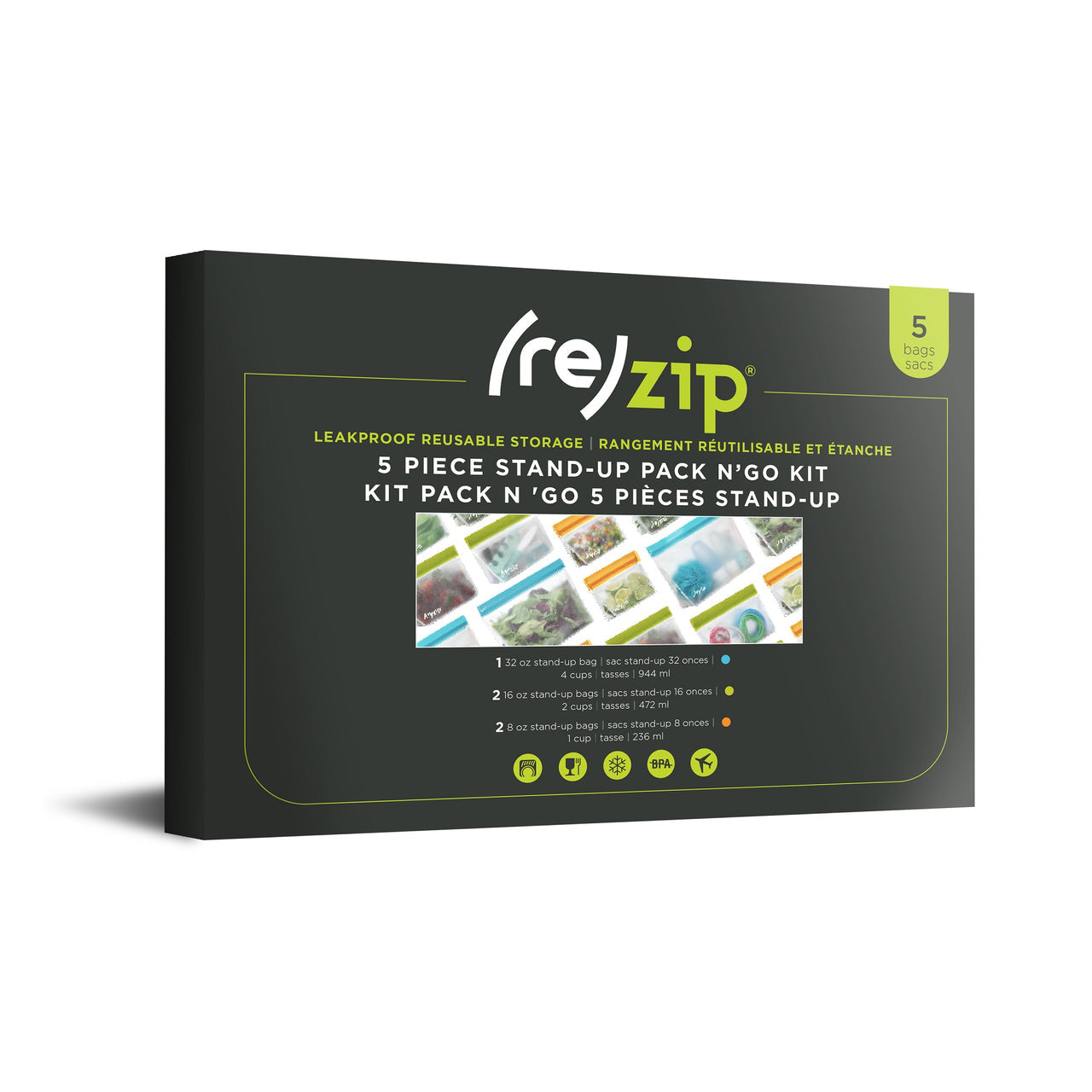 5-piece Stand-Up Pack n' Go Kit includes: