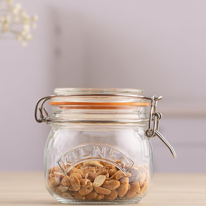 With the Kilner brand embossed in the front, this jar is airtight with an orange rubber seal
