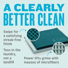 Cleaning with blue mystery sprays and mountains of paper towels makes us uneasy, too. That’s why there’s the E-Cloth Window Cleaning Kit. It’s all you need for sparkling windows and shiny surfaces. Just dampen the Window Cloth and wipe. Then follow with the dry Glass & Polishing Cloth, erasing streaks for a perfect finish. Masses of microscopic fibers in the waffle-weave Window Cloth grab grime, dust, and more from smooth surfaces like windows and mirrors, as well as frames and sills — and they don't let go until rinsed. Generously sized, the Cloth swiftly handles even large windows with just a quick rinse or two. Next comes the microfiber Glass & Polishing Cloth, our secret to a satisfying, streak-free finish. Just wipe — and admire the results. Made to toss in the laundry instead of a landfill, our Window Cleaning Kit is backed by our 1-year or 100-wash promise.