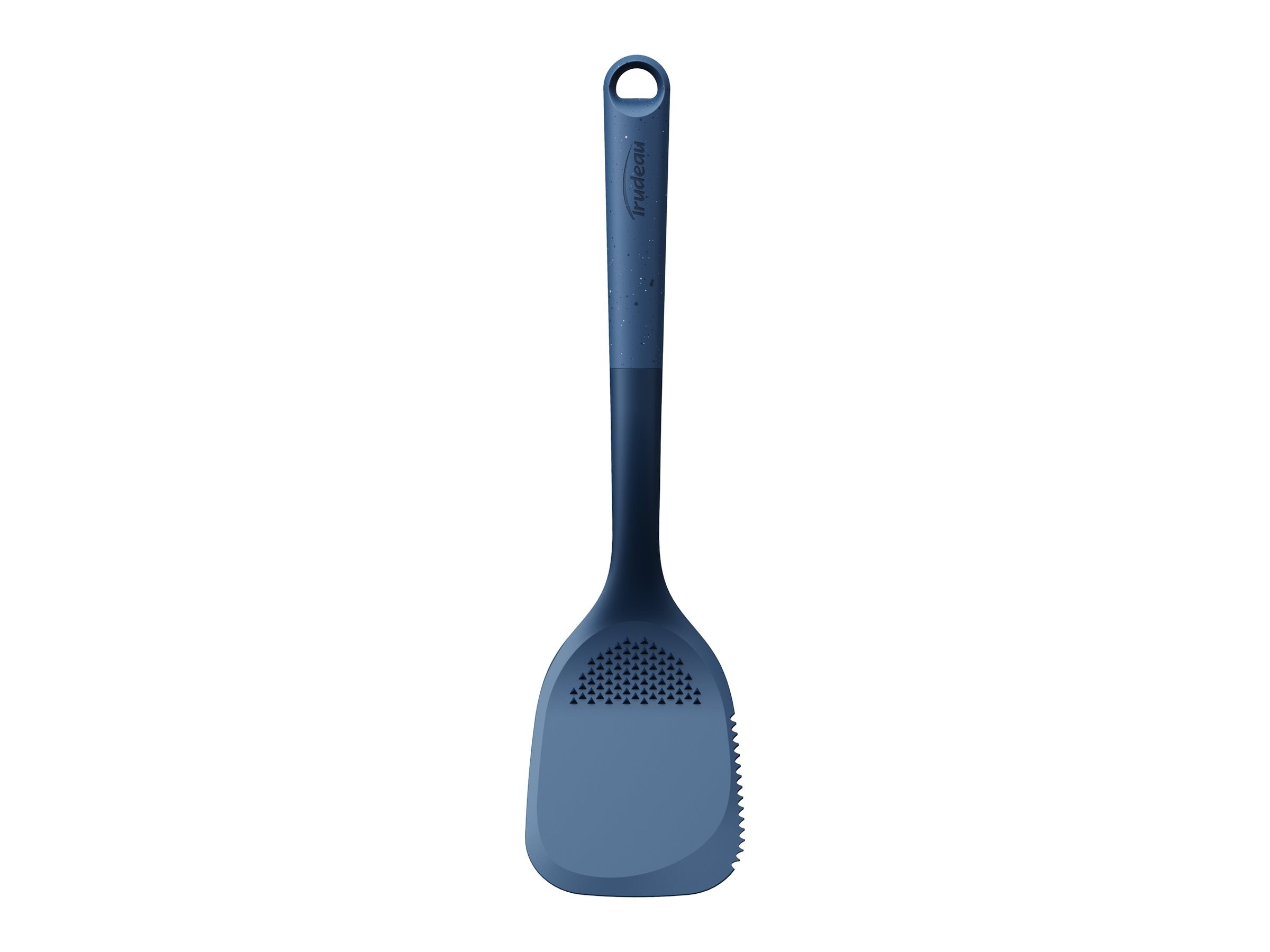 Incorporated features like a sharp edge and integrated grater make the turner a multifunctional tool, simplifying food preparation.
