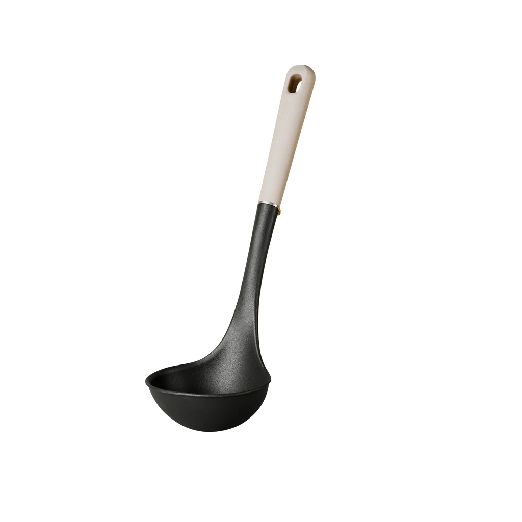 Features a nylon with fibreglass boosted tool head that’s heat resistant up to 225C/437F and hangable handle to save counter space. Our utensils also have a stainless steel resting feature so the utensil can sit on the lip of a pot without falling in. Dishwasher safe and meets high food grade standards: FDA certified.