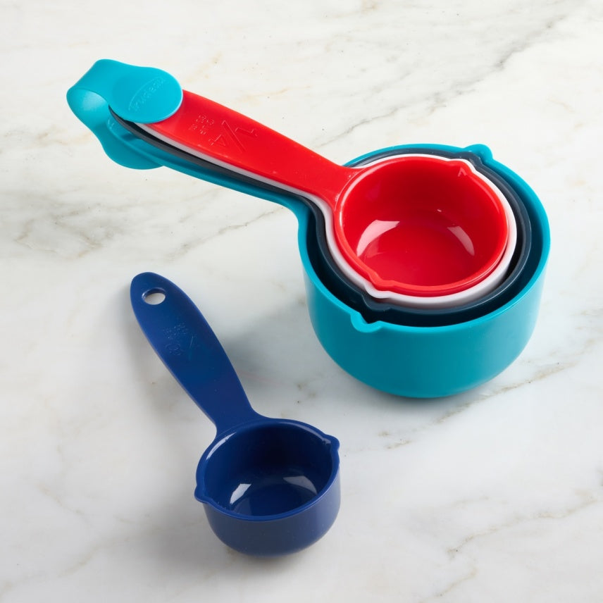 You will not want to do without them! The Trudeau Measuring cups set includes five colorful measuring cups of 1/8, 1/4, 1/3 , 1/2 and 1 cup. This Trudeau original design set is BPA free and dishwasher safe. In addition, the cups are compact and stackable for easy storage.