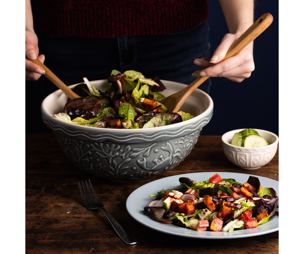 The Mixing bowl measures 26cm diameter x 12cm high, and has a capacity of 2.7 litres, made from earthenware the bowl is dishwasher and freezer safe.