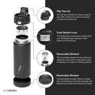 The 16 oz PERK insulated travel mug is the perfect portable container for hot and cold brew tea or iced and loose leaf tea, since a convenient strainer is included. It features EcoVessel's signature TriMax® Triple Insulation and keeps drinks cold up to 36 hours and hot up to 8 hours. The PERK tea and coffee mug is designed for one-handed use, with a push button that opens the top, and a lock to keep your drink leak-free. Plus, choosing a reusable tumbler cuts down on single-use plastic consumption. Keep this versatile travel mug in your car cup holder or toss it into a tote and bring it to yoga class, on the trails, or to work to stay healthily hydrated throughout the day.