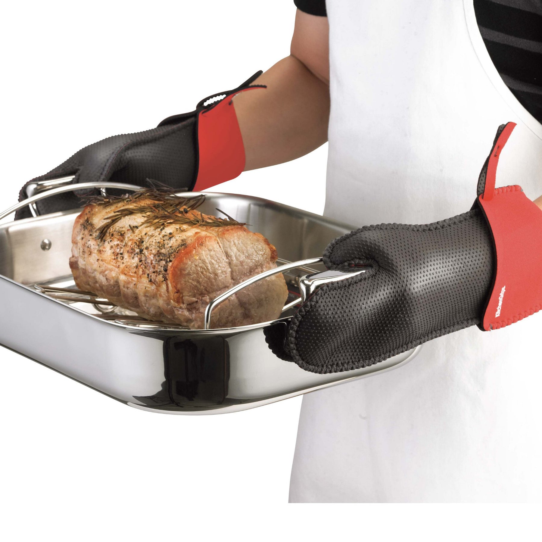 Get the Mitt that Fits! Kitchen Grip Mitts offers both dexterity and safety for your kitchen. Poorly fitted mitts are awkward, clumsy and unsafe; Kitchen Grips are built to fit your hand comfortably while keeping your hands safe from direct heat contact. Comprised of our FLXaPrene™ material and Kevlar® stitching, the combined materials prevent stains that cause bacteria buildup on your mitt, while the Kevlar® stitching ensures the seams of the mitt will not melt under high heat. Kitchen Grip's famous Non-Slip Grip has a raised nub surface pattern and is engineered to provide a better and safer grip, while also being water-repellent, stain-resistant and dishwasher safe.