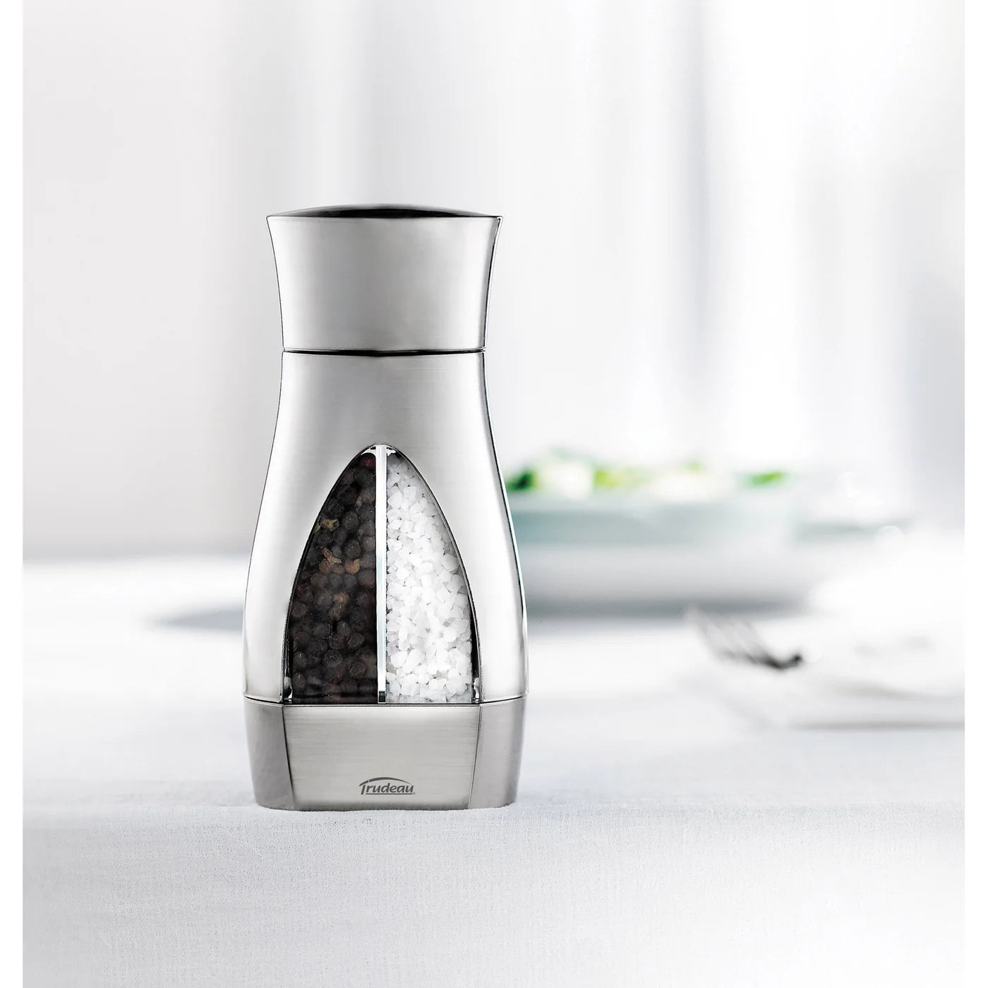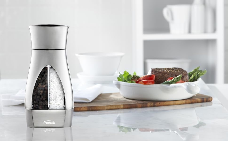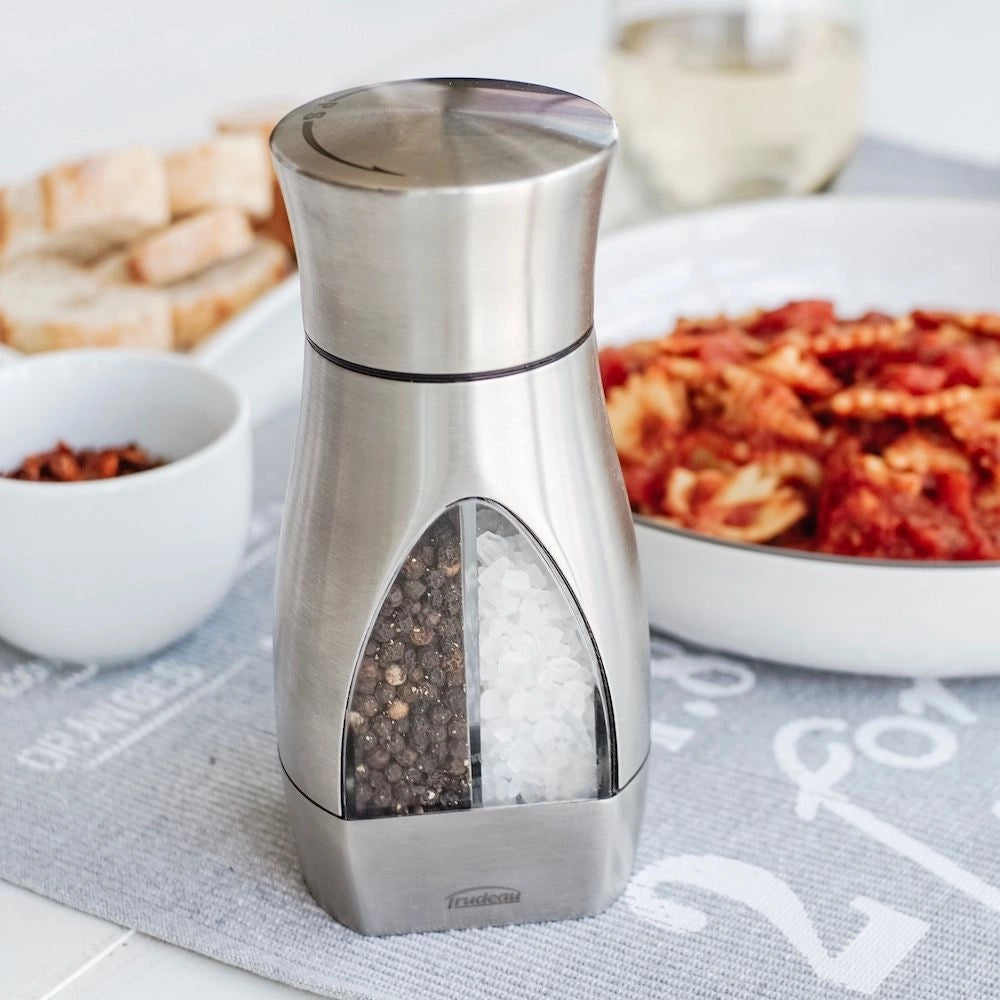 A must have on the kitchen table. Trudeau's 2-in-1 Salt and Pepper Mill lets you choose either fresh ground pepper or salt with a twist of your wrist. Both "S" and "P" are displayed at the top of the knob to know which direction t