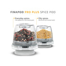 The FinaMill FinaPod Plus is a grinder to be used with the FinaMill to grind everyday and oily spices using precise control. Simply refill the FinaPod Plus with the wide opening, avoiding spills. Crafted with patented ceramic grinding elements, adjust the knob to determine desired grind size.
