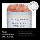 Refill your salt mill with Himalayan Pink Salt from Cole & Mason. This 20 oz. jar contains 570 grams of highest quality Himalayan pink coarse salt. The jar is made of glass and contains a foil seal to keep all the salt fresh longer.