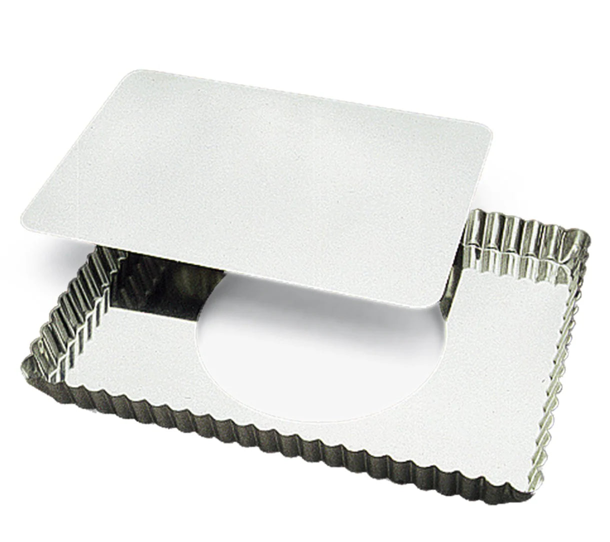 The Gobel Fluted Rectangle Tart Mold is great for baking tarts and quiches. Its fluted edges form a neat, thick crust, and the removable bottom makes serving easy. Made from durable steel, it is oven and freezer safe.