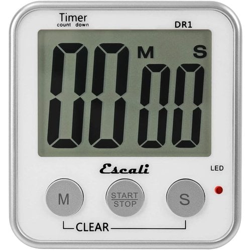 The Escali Extra Large Display Digital Timer is easy to read from far away and features a clock mode when not in use. The timer can count up or down as well as recall previous timer settings for repetitive tasks. Mount the timer to a nearby refrigerator using the magnetic back or place it on a countertop using the built-in kickstand.
