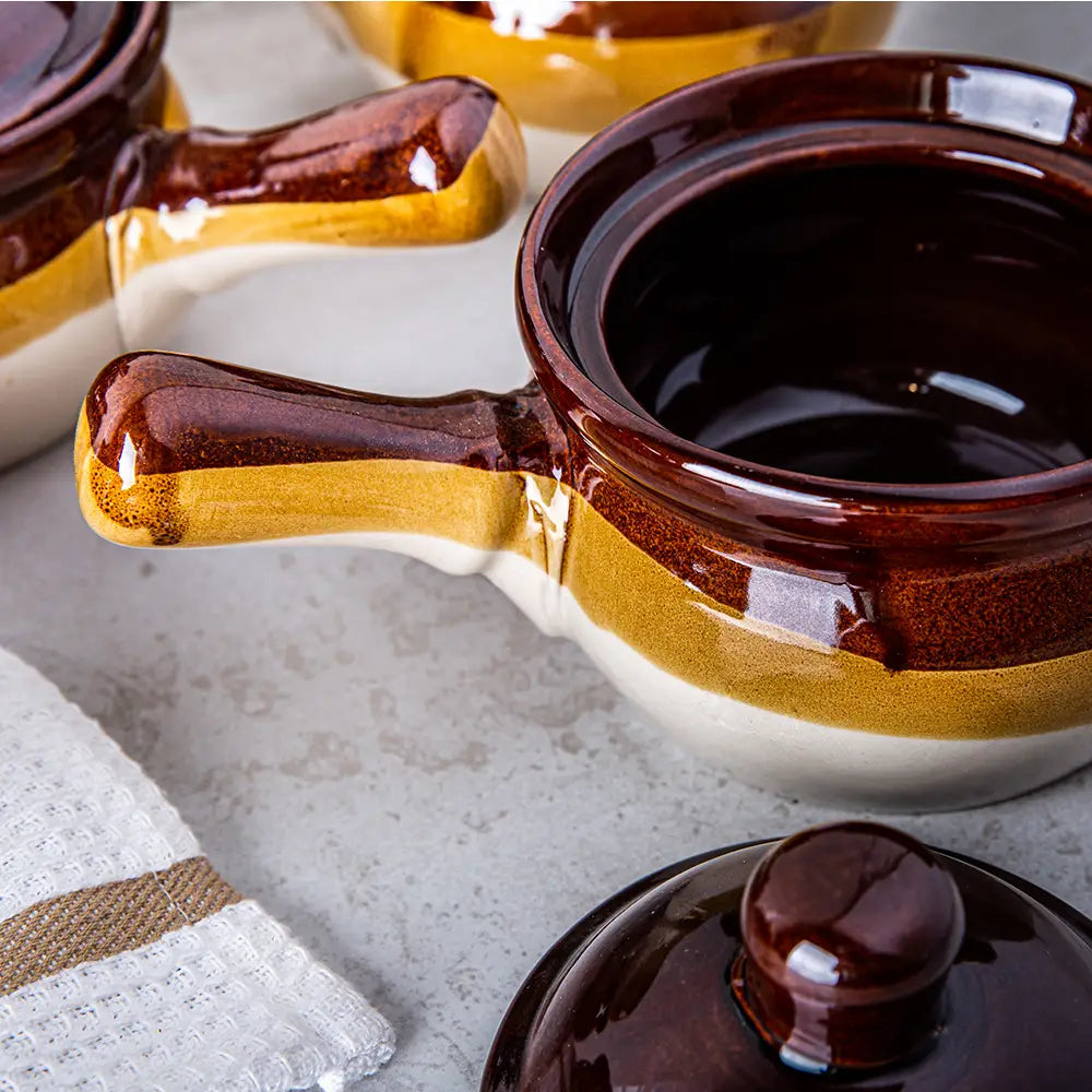 Make delicious french onion soup at home with these ceramic, oven safe Kitchen Basics Onion Soup Bowls.