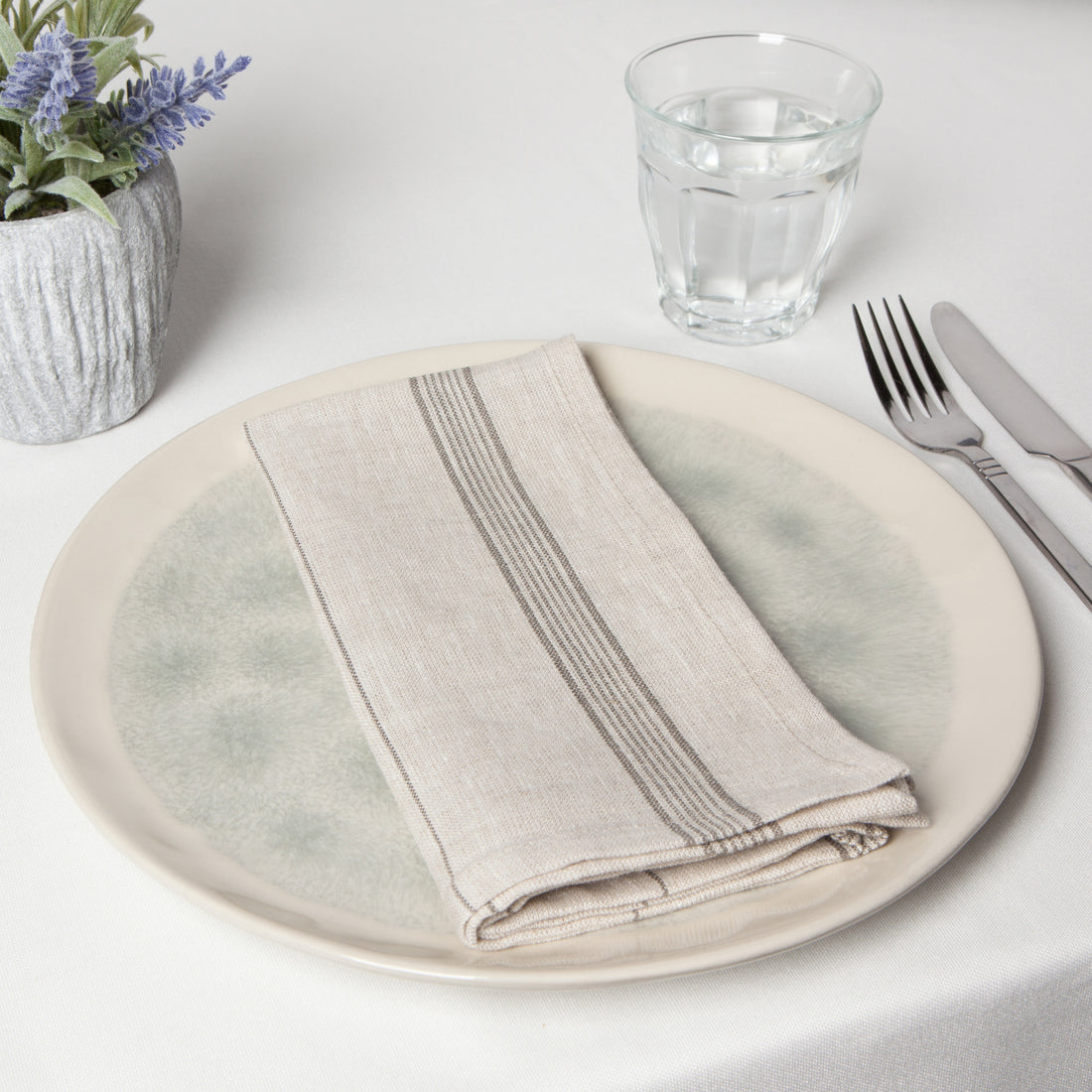 In shades of white, fine bands are woven into these subtly chic linen napkins