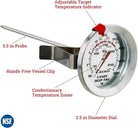 Temperature range: 100 degree to 500 DegreeF /40 Degree to 260 DegreeC. Probe length: 5.5 in. Dial diameter: 2.5 in
