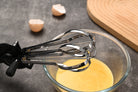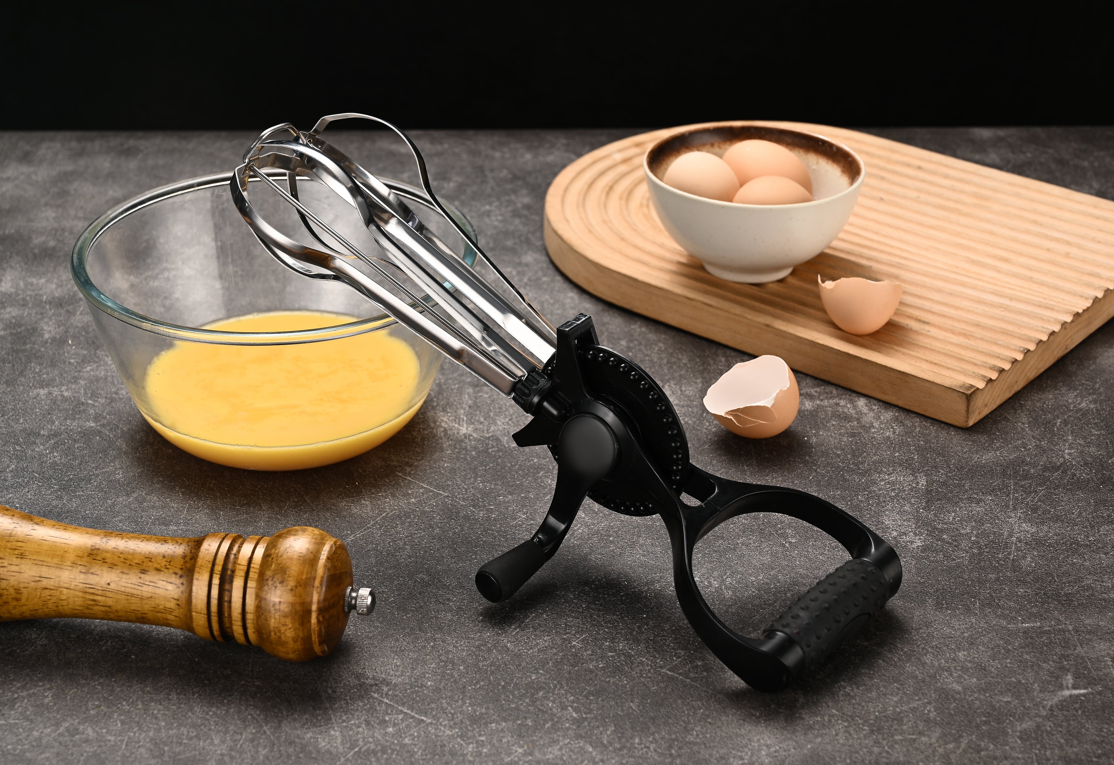 Bake better! Jazz up your baking adventures with this simple and effective mechanical egg beater. Avoid difficult and clunky electronic mixers that take up precious countertop or cabinet space, and use this old fashioned hand held mixer with an updated modern look instead. The sturdy stainless steel construction, efficient gears, black handle, and easy grip hand crank are sure to get the job done with ease and classic style. It's great, portable, and easy to use.