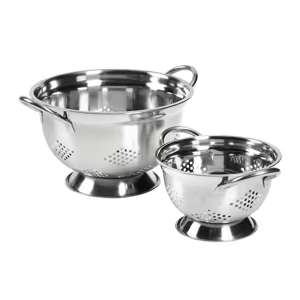 A sparkling mirror finish, stainless steel footed colander that is durable Equipped with handles that are convenient for transport in the kitchen, and can be hung from hooks during storage, which will help save space and declutter the kitchen. The sturdy base sits well in kitchen sink and the holes at the bottom are effective in draining liquids quickly. Ideal for rinsing fruits and vegetables in the sink, as well as staining pasta.
