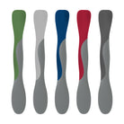 This clever tool can slice, spread, and scoop. It's the perfect tool for breakfast or lunch prep. Large Scoop & Spread? Colors are Charcoal, Oyster Gray, Deep Indigo, Cayenne, and Pesto. Nylon spreader makes it easy to spread jellies, jams, butter, and soft cheeses Flexible silicone scrapes and scoops