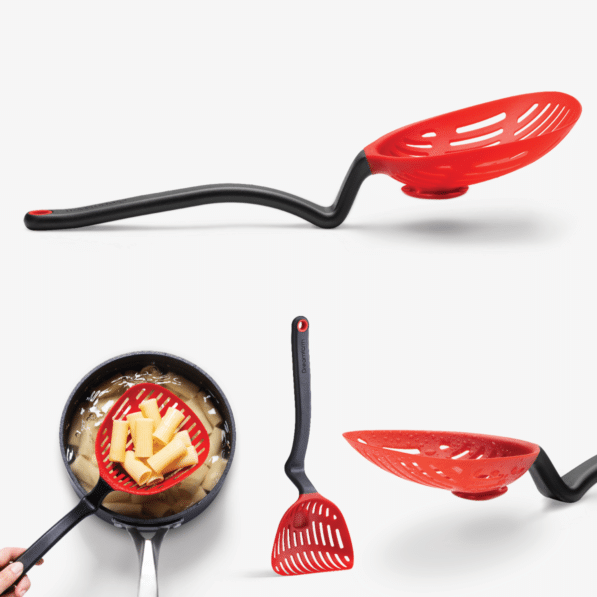 Lestrain is a scoop strainer that catches its own drips and sits up off your counter.