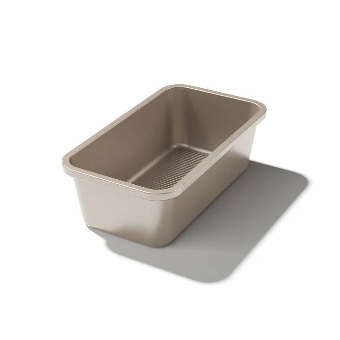 From banana bread to sandwich loaves, the OXO Good Grips Non-Stick Pro Metal Bakeware 1 Lb Loaf Pan is up to the task. Made in the USA, OXO Metal Bakeware brings you the same best-in-class quality and performance found in commercial bakeware. The Loaf Pan is constructed from heavy-gauge aluminized steel for stability, even heat distribution and durability for years to come. The Swiss-engineered, ceramic-reinforced, two-layer coating allows for easy food release while protecting against scratching, staining and corrosion. The micro-textured pattern minimizes the Pan’s contact with food for more airflow and even baking. The square-rolled edge adds structure and provides a secure grip. Hand wash only.