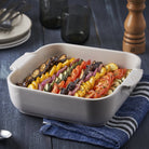 Discover all the pleasure and flavours of slowly baked recipes that will delight the entire family. Produced in France with a continually enhanced ceramic and enamel design, Peugeot's Appolia oven dishes guarantee slow and evenly cooked meals, meaning healthy dishes packed full of flavour. The 40 cm (16in.) version of Peugeot's Appolia rectangular oven dish is available in a range of essential classic and stylish contemporary colours, including a sparkling and cheerful red.