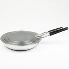 - The screen fits frying pans up to 13" wide and two concentric rings center and secure the screen on pans.