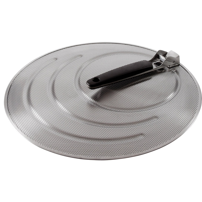 - Made of perforated stainless steel, the splatter screen keeps grease contained when you fry bacon, sausages, potatoes and more.